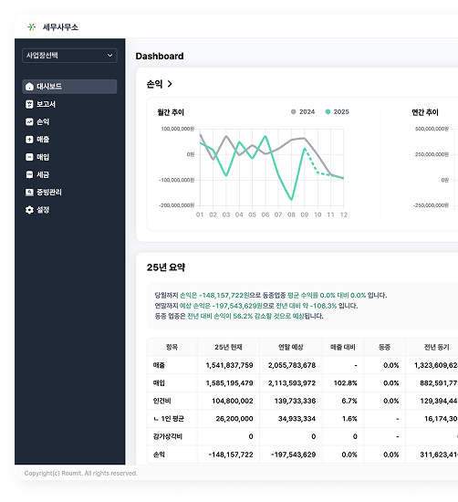 손익, 매출, 인건비, 추세 등 기간별 사업 현황을 보기 쉽게 파악할 수 있어요